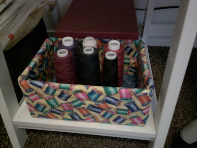 fabric with colorful spools all over it was the perfect piece to cover the bin
